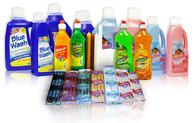 Nous fournissons aux ménages des produits d’entretien de qualité. Notre gamme comprend le détergent liquide pour la lessive (Blue Wash), l’assouplissant (Softee),le liquide vaisselle (Gleam, Dish up) et le désinfectant (Nuvo) |